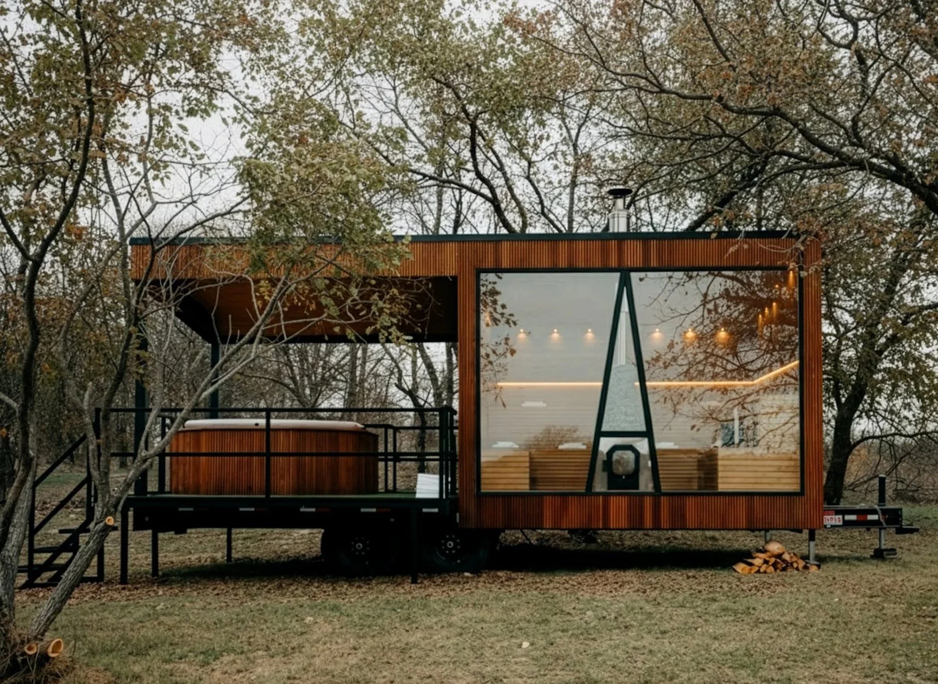 Description: Wood burning traditional sauna on wheels